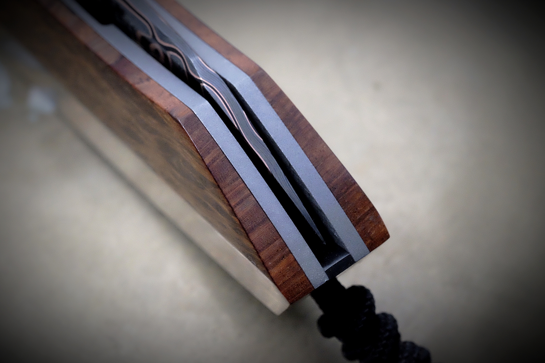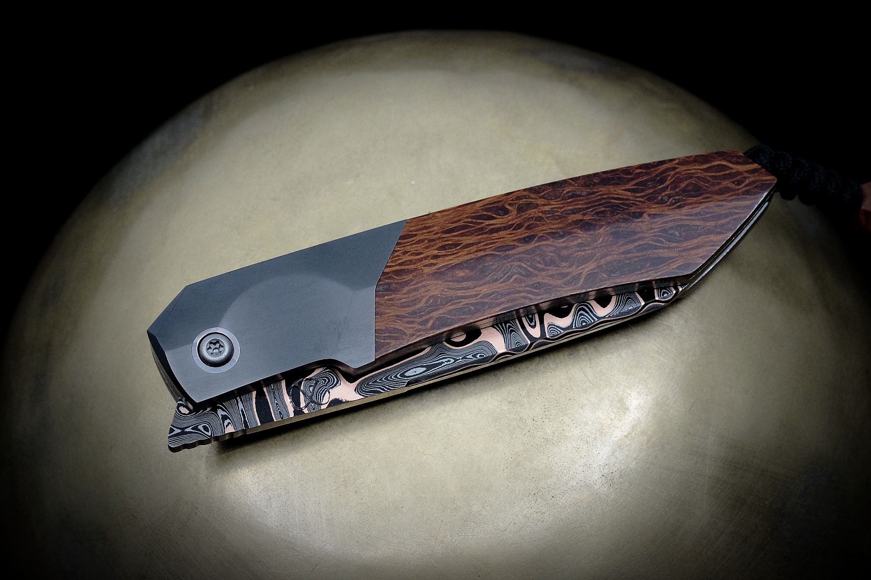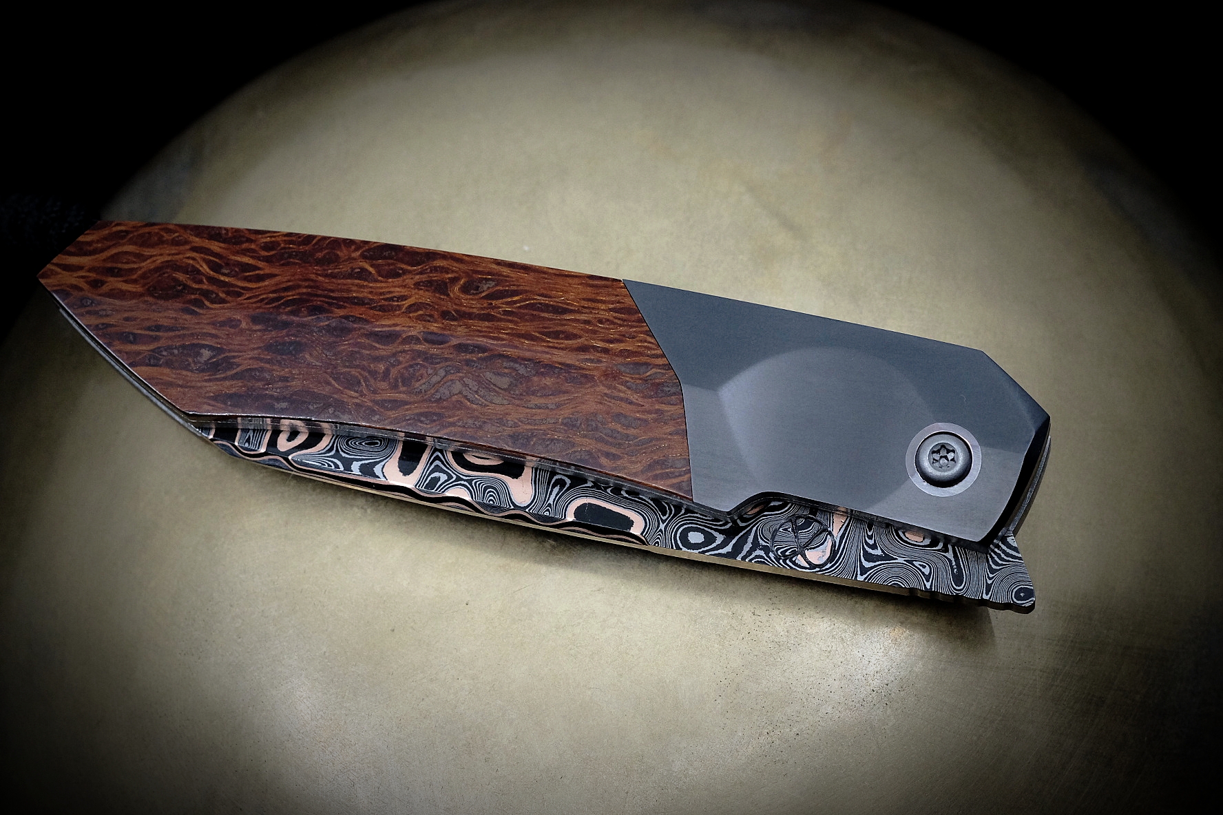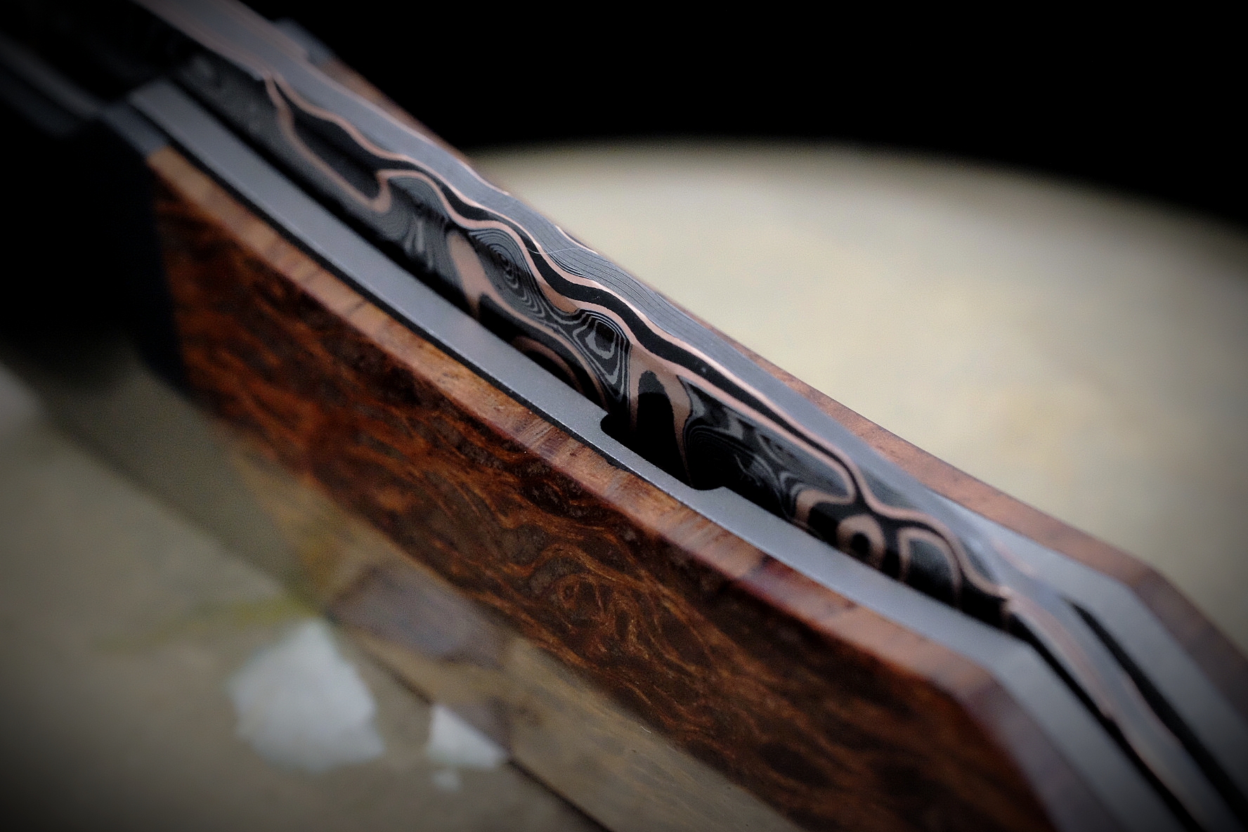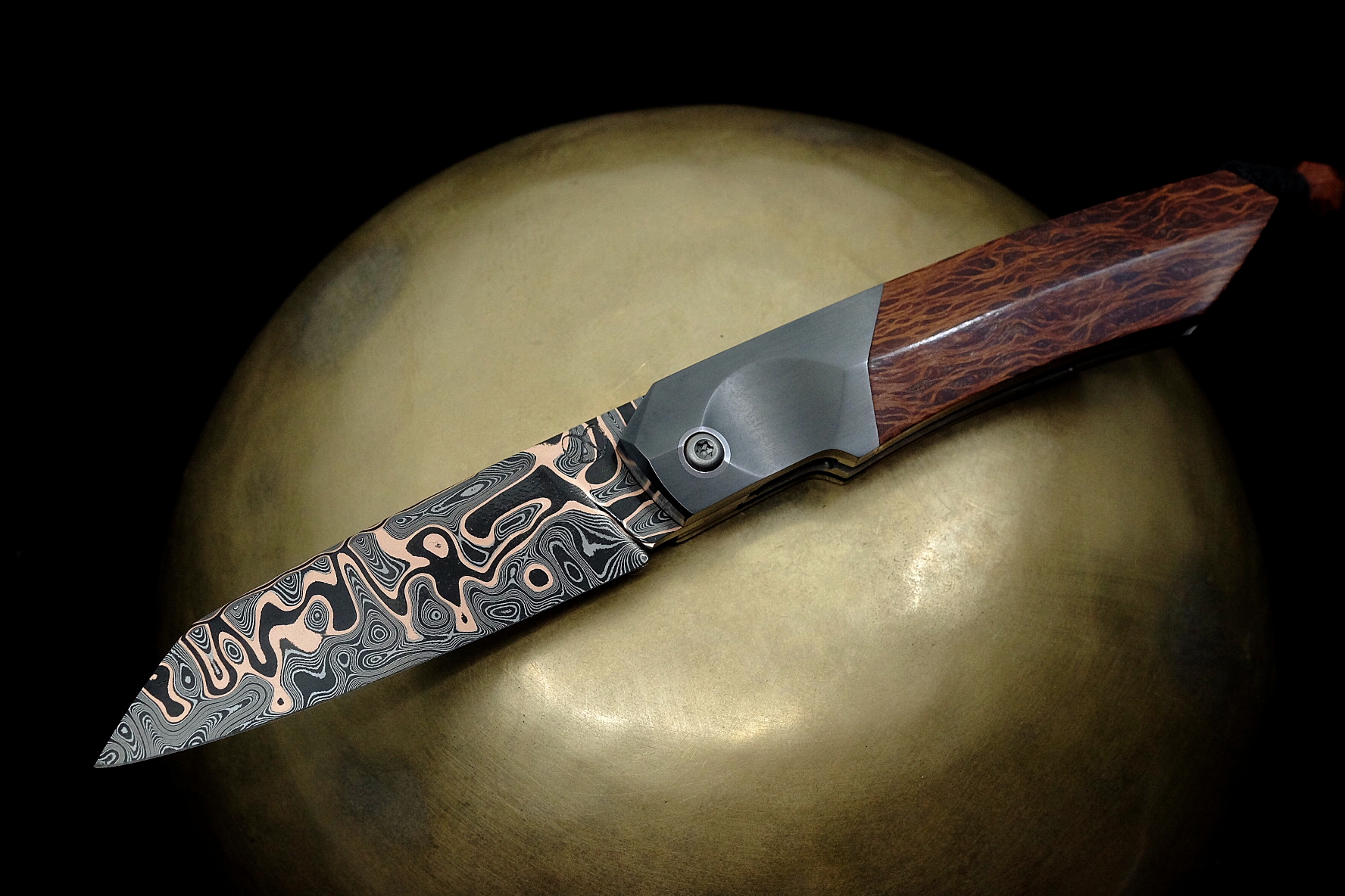 Liner lock 205mm / labyrinthe cuivre – zirconium 705 – lacewood