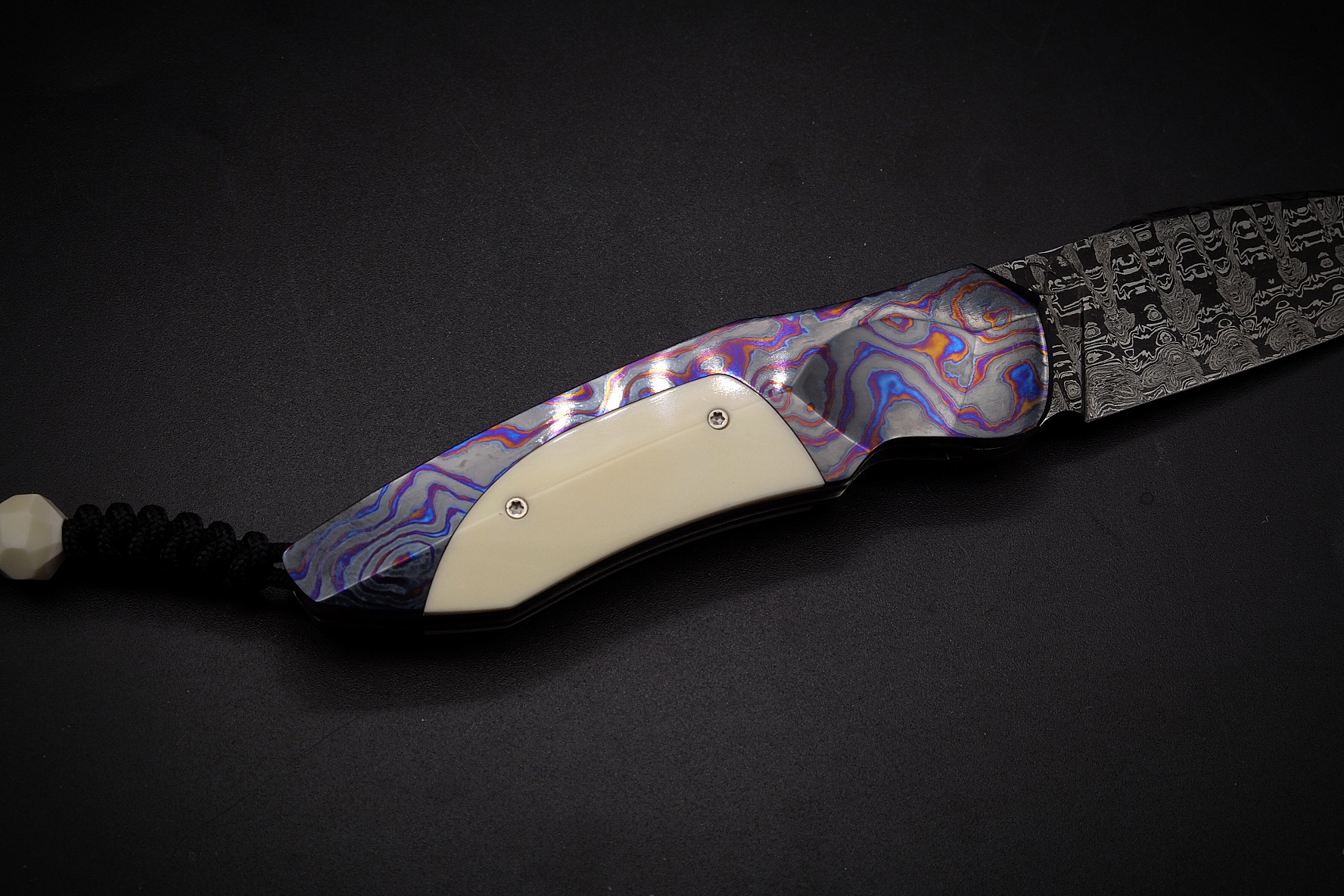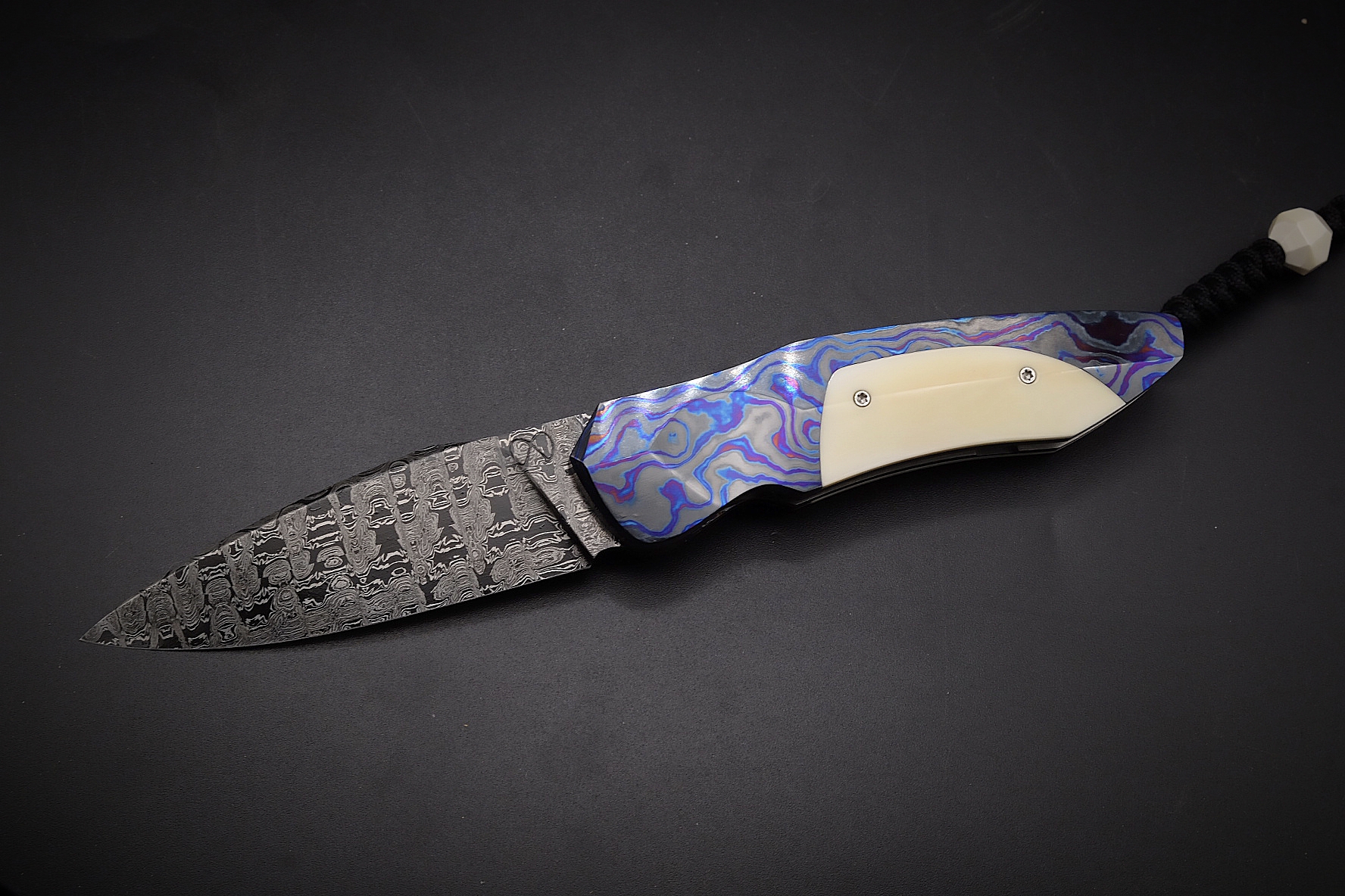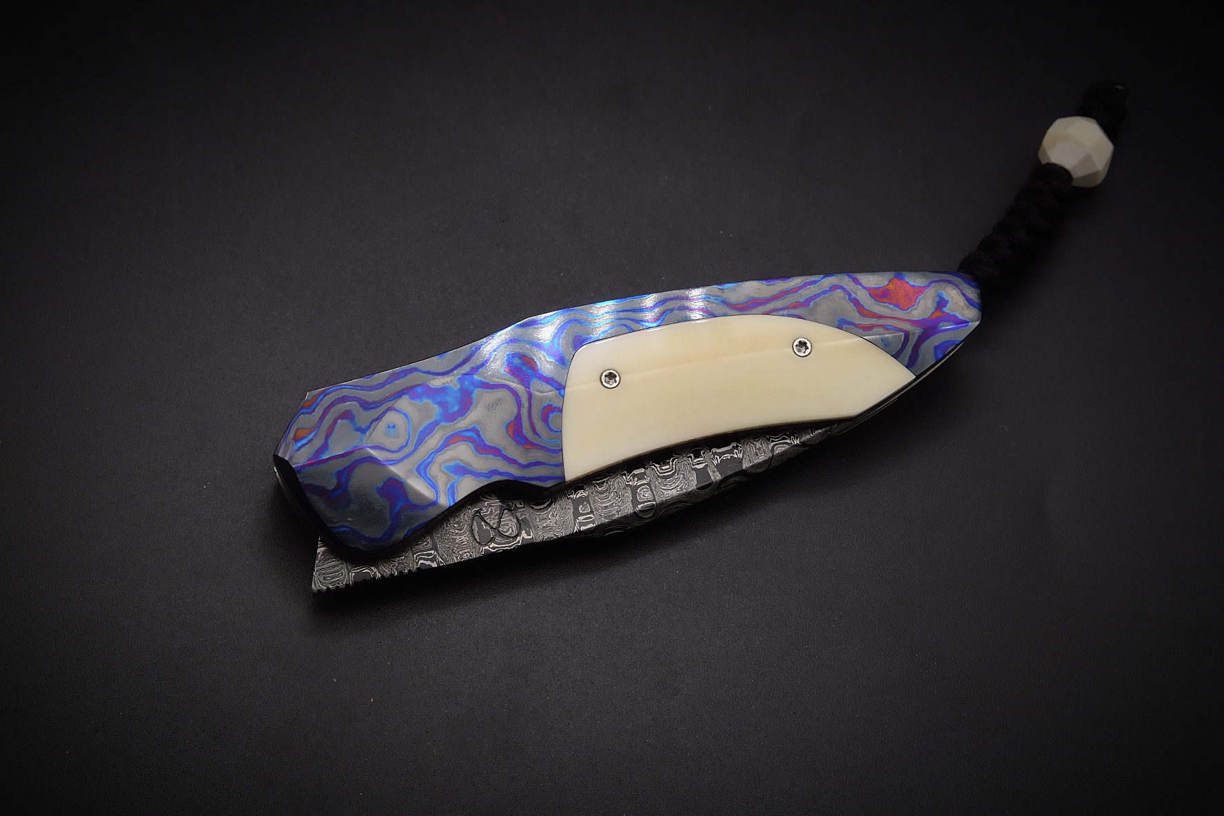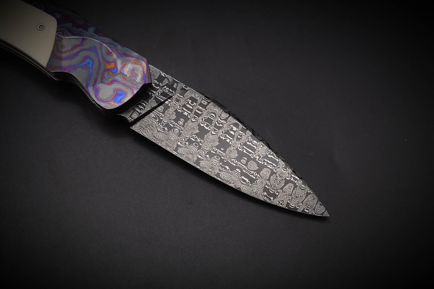 Assemblage du manche avec des mitres intégrales en Zircuti (zirconium / titane grade 2 / titane grade 5) et de l’ivoire de phacochère pour le reste du manche.